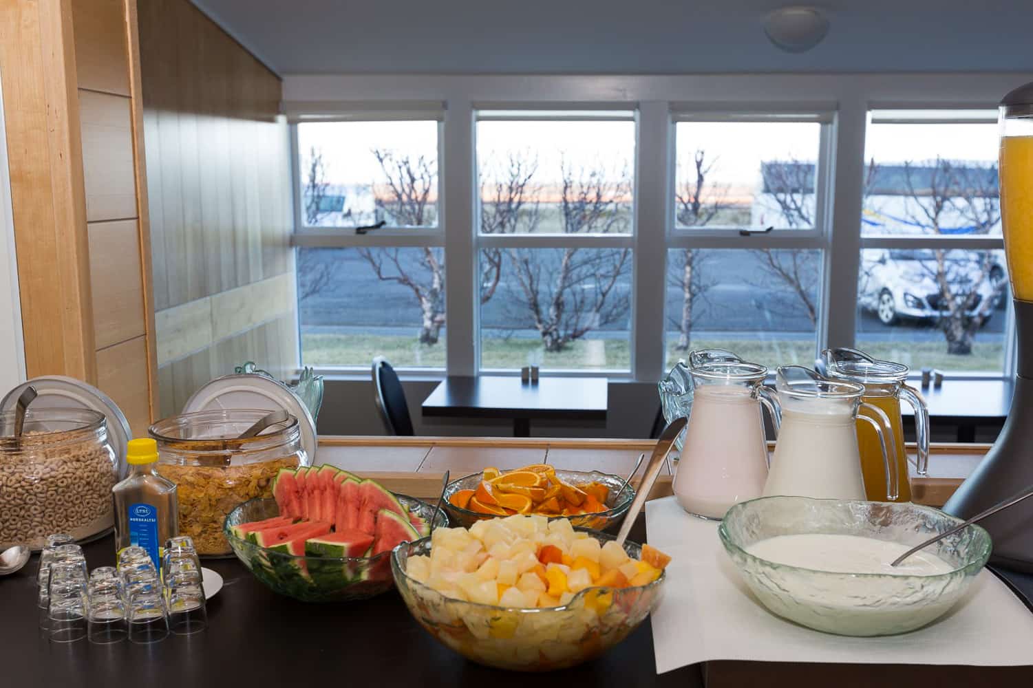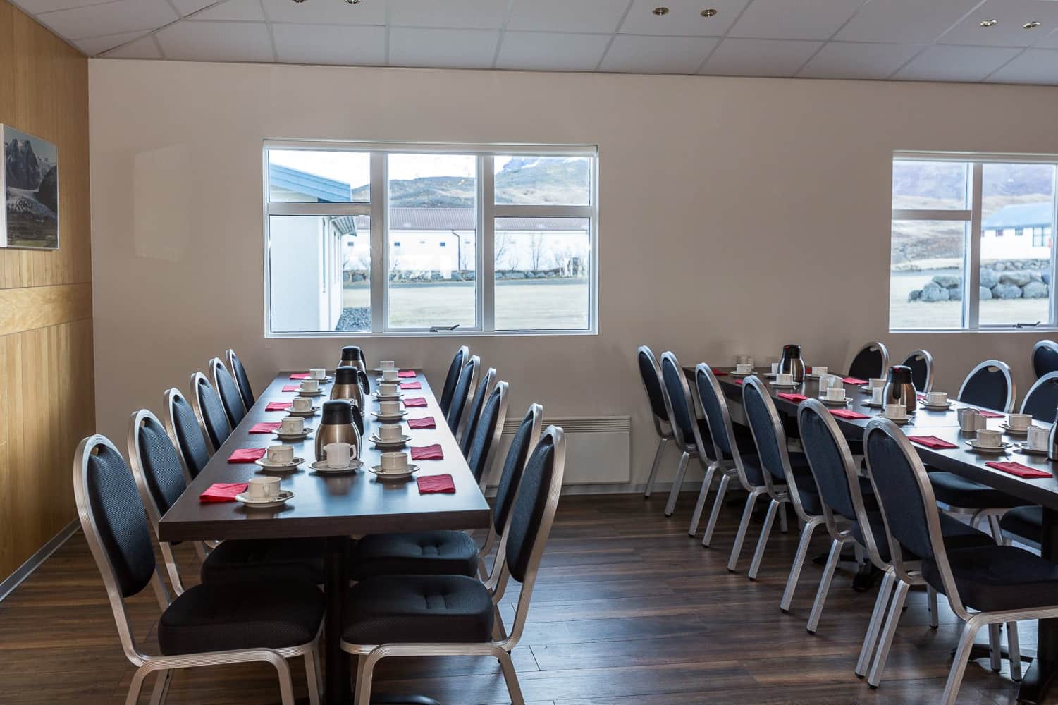 We have a beautiful dining room and we offer breakfast, lunch and dinner